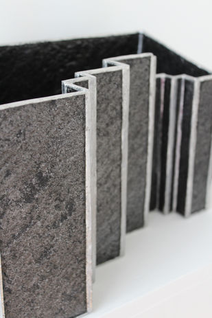 Le vase Origine tire sa spécificité de la matière dont il est fait, de la feuille de pierre. Reprenant d'ailleurs les paysages en strates des falaises et des carrières de pierre, il témoigne de la volonté d'Affleur de Sel de s'ouvrir à de nombreuses matières inédites.
